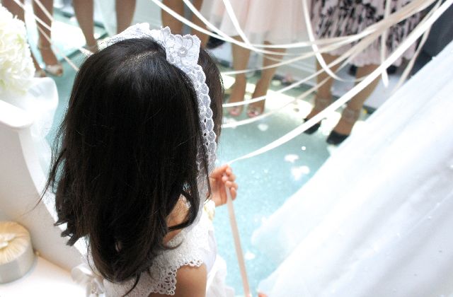 これは親族の中から小さい子が選ばれるみたいなんですけど、私の場合はドレスの裾を持つ係りではなくて後で花束を渡す係りでした。